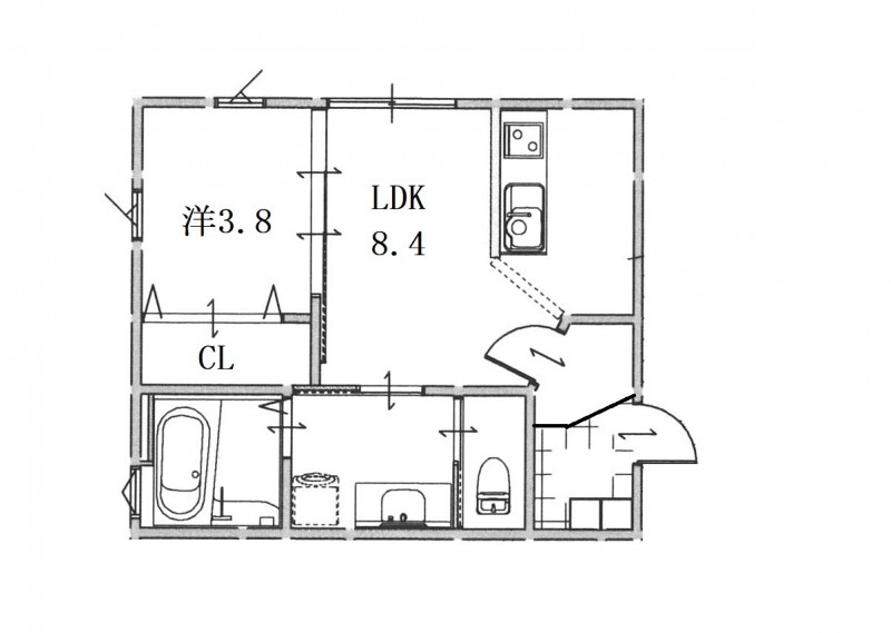 1LDK (LDK8.4・洋3.8)