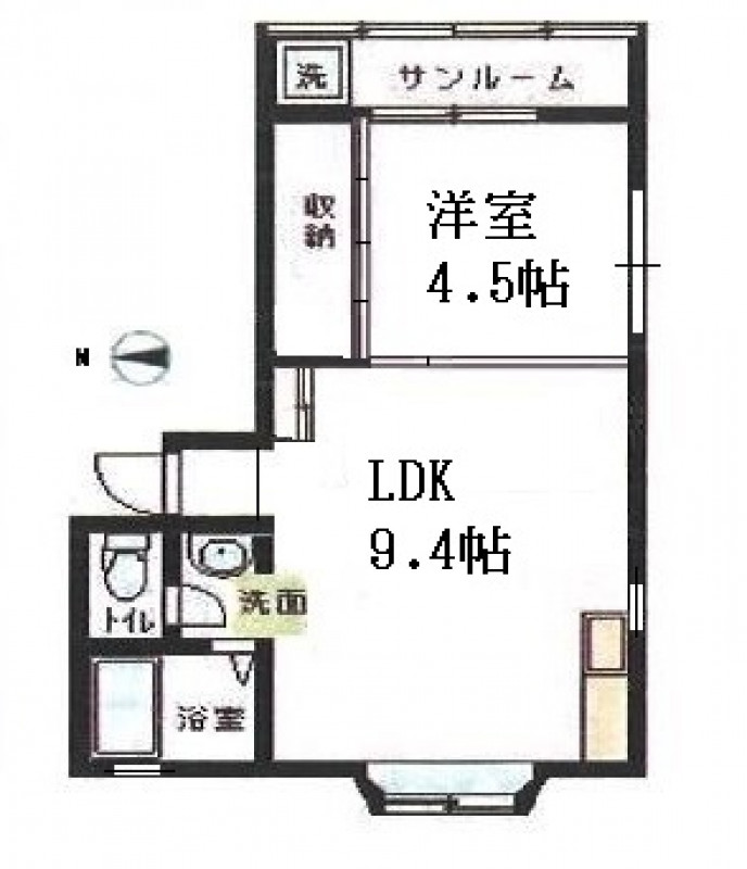 1LDK (LDK9.4・洋室4.5・SR2)